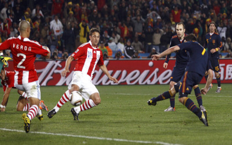 Đối thủ của Tây Ban Nha ở tứ kết là Paraguay, đội bóng đã gây bất ngờ khi vượt qua vòng bảng. Trận đấu diễn ra cực kỳ nghẹt thở. Cả hai đội đều có cơ hội ghi bàn từ chấm phạt đền, nhưng đều thất bại.